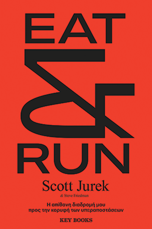 Στο Eat and Run ο Τζούρεκ αφηγείται ιστορίες από τη ζωή του και την καριέρα του, ενώ μοιράζεται πρακτικές συμβουλές και τις vegan συνταγές του. Από τα παιδικά του χρόνια, όταν κυνηγούσε και μαγείρευε για την οικογένειά του που λάτρευε το κρέας, έως την αργή μετάβασή του στους δρόμους υπεραποστάσεων (μισούσε το τρέξιμο), τη γνωριμία του με τους Ταραουμάρα και τη χορτοφαγία, ο Σκοτ Τζούρεκ είναι μια πηγή έμπνευσης· είτε πρόκειται να τρέξεις πρώτη φορά είτε θέλεις να διευρύνεις τους διατροφικούς ορίζοντές σου ή απλώς να εξερευνήσεις τα όριά σου.